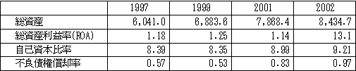 こうした点を踏まえて、大手行の2002年第4四半期の収益をみると、以下のように、業務内容の違いが業績に大きく影響する結果となっている。