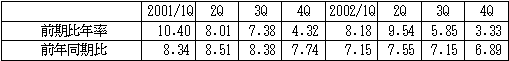 その一方で、延滞債権額も前年比10.2%増と依然増加を続けているが、増加のペースは落ちており(前年は28.0%増)、2002年第4四半期には僅かながら3年ぶりの減少に転じている。また、2002年には11の金融機関が破綻しており1994年以来の多さとなっている一方、FDICにより財務内容に「問題あり」とされる銀行数は若干減少している。