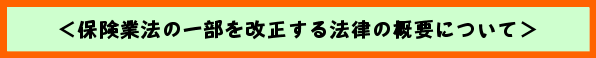 平成15年3月14日に国会に提出された「保険業法の一部を改正する法律案」が4月25日に国会で成立しました。 以下、この法改正の概要について、ご説明いたします。 |