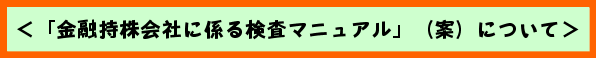 「金融持株会社に係る検査マニュアル」(案)等について、詳しくは、金融庁ホームページの「パブリック・コメント」から「「金融持株会社に係る検査マニュアル」(案)について」にアクセスしてください。 |
