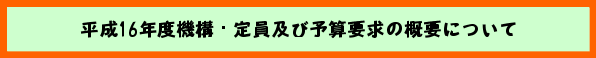 | 2 | .機構・定員要求の内容 金融庁としては、平成16年度機構・定員要求においては、「より強固な金融システムの構築」、「証券市場の構造改革の推進」及び「実効性、効率性の高い検査・監督体制の整備」の三つを体制整備の重点化項目としています。 | ||||||
