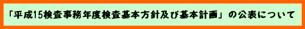 | ※ | 「平成15検査事務年度検査基本方針及び基本計画」をご覧になりたい方は、金融庁ホームページの「報道発表など」から「「平成15検査事務年度検査基本方針及び基本計画」の公表について」(平成15年8月18日)にアクセスしてください。また、「金融検査」については、アクセスFSA本号の「金融便利帳:金融検査」もご覧ください。 |