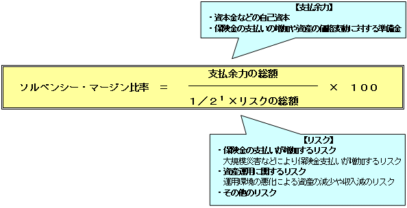 この「通常の予測を超えて発生するリスク」に対して、保険会社がどの程度「自己資本」、「準備金」等の支払余力を有するかを示す指標がソルベンシー・マージン比率です。