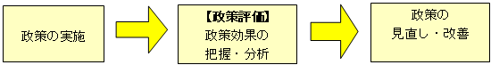 政策評価とは、各府省が自らその政策の効果を把握・分析し、評価を行うことにより、次の企画立案や実施に役立てるものです。