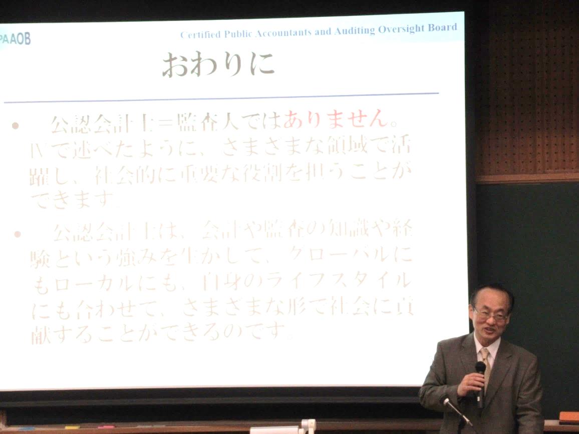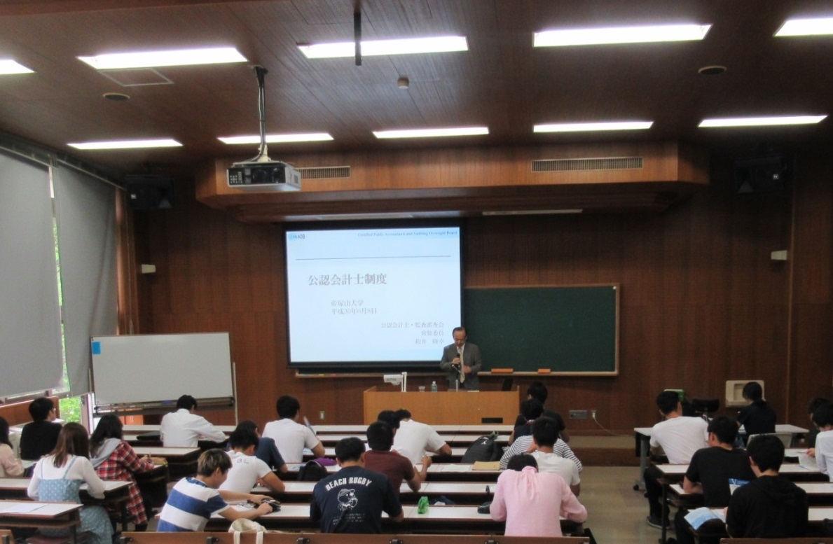 平成30年6月8日、帝塚山大学において、松井委員が「公認会計士制度」をテーマとして講演を行い、多数の学生の皆さまに御出席いただきました。