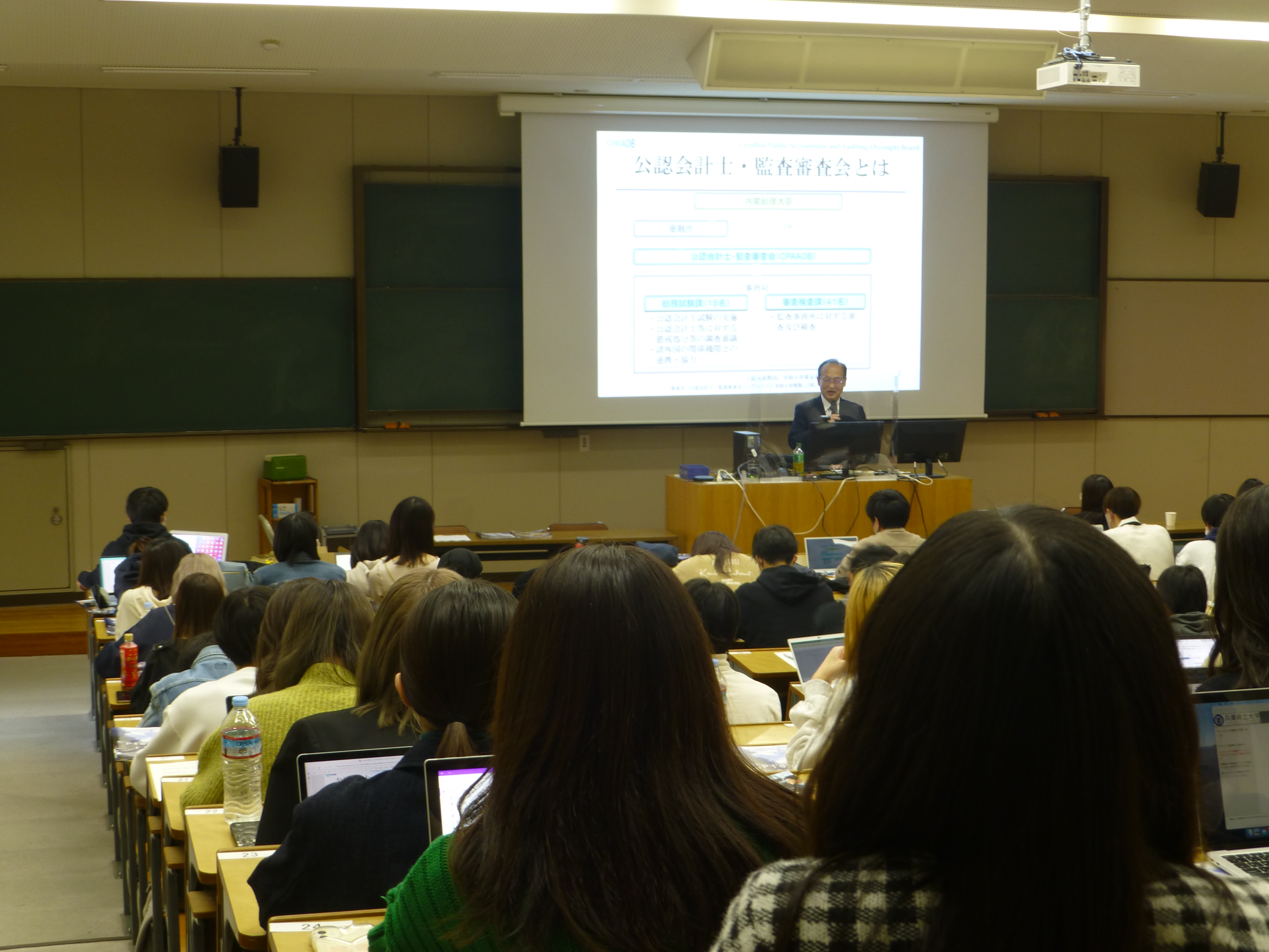 令和4年10月26日、兵庫県立大学において、松井会長が「拡大する公認会計士の役割」をテーマとして講演を行い、多数の学生の皆さまに御出席いただきました。