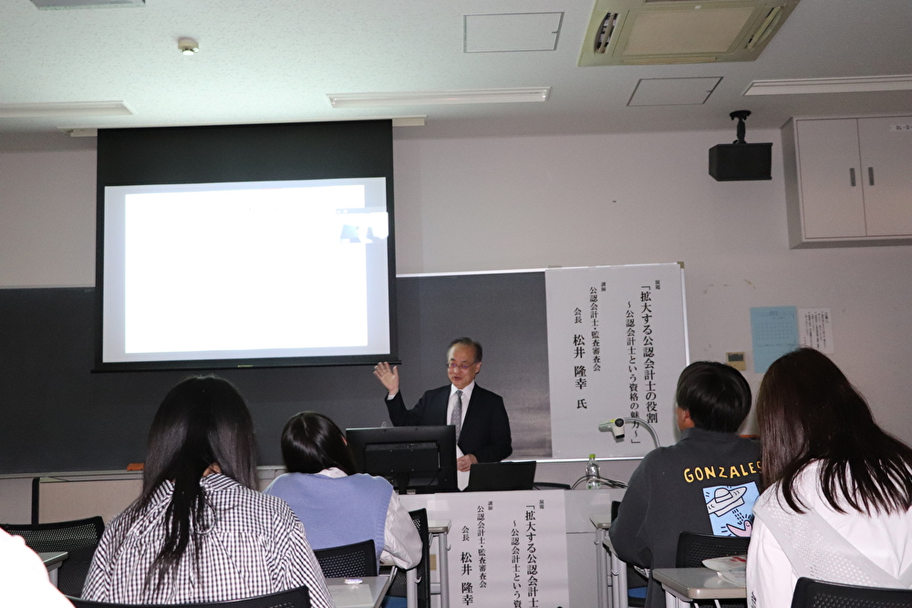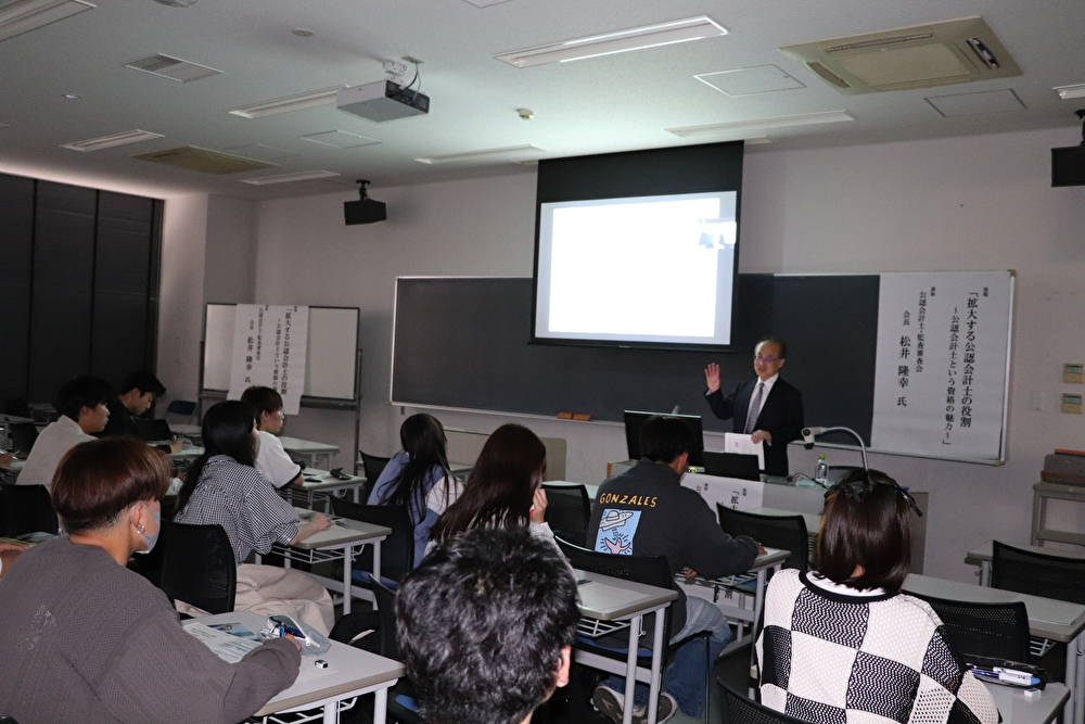 令和6年5月17日、大阪公立大学において、松井会長が「拡大する公認会計士の役割」をテーマとして講演を行い、多数の学生の皆さまに御出席いただきました。