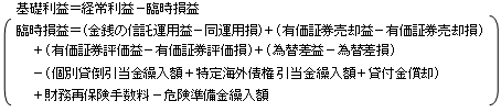 なお、この「基礎利益」についても、保険会社の財務の状況等を示す指標の一つにすぎず、保険会社の健全性を判断するためには、その他の指標であるソルベンシー・マージン比率、資産・負債及び損益等の財務の状況、又は新規契約、解約等の業務の状況に関する指標も含めて総合的に検討することが必要である。
