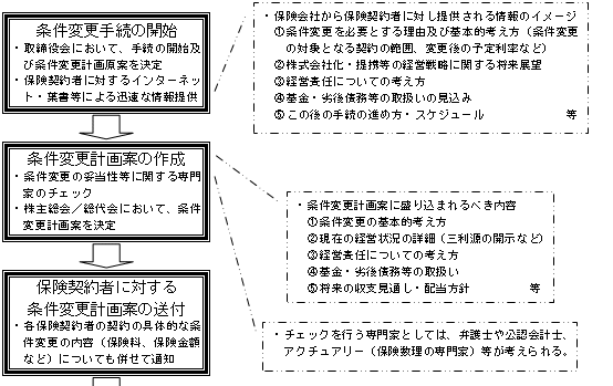 といった保険契約者の権利保護に配慮した適正な手続の下で、保険契約者の理解を得て契約条件の変更を行うことは否定されるべきものではない。