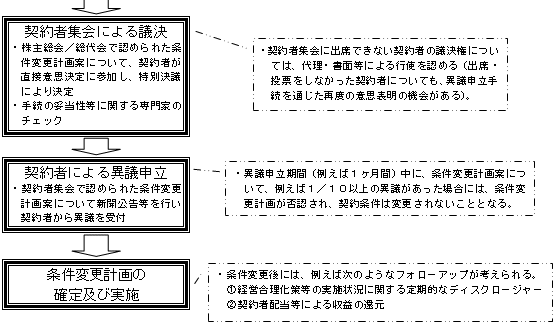 将来収支分析の適正化等を通じて、更生手続の早期発動に努めることが重要であり、それ以外に契約条件の変更を可能とする手続を設ける必要は乏しい、