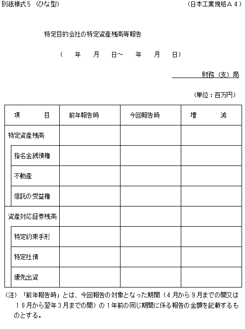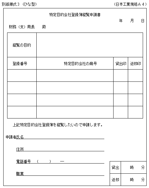 3. ガイドライン別添1参考様式集中、「10 特定目的会社(SPC)関係」として次の様式を