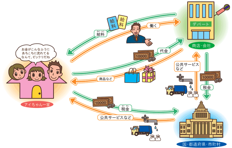 お金って、世の中をぐるぐる回っているんだよ!--アイちゃん親子が買った商品の代金が、お父さんの給料になることも